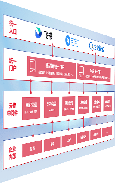 对协作平台提供支持服务,,,,支持企业应用与协作平台对接,,包含组织同步、、、消息集成、、待办集成等。。。支持目前主流的协作平台:钉钉、、企微和飞书。。