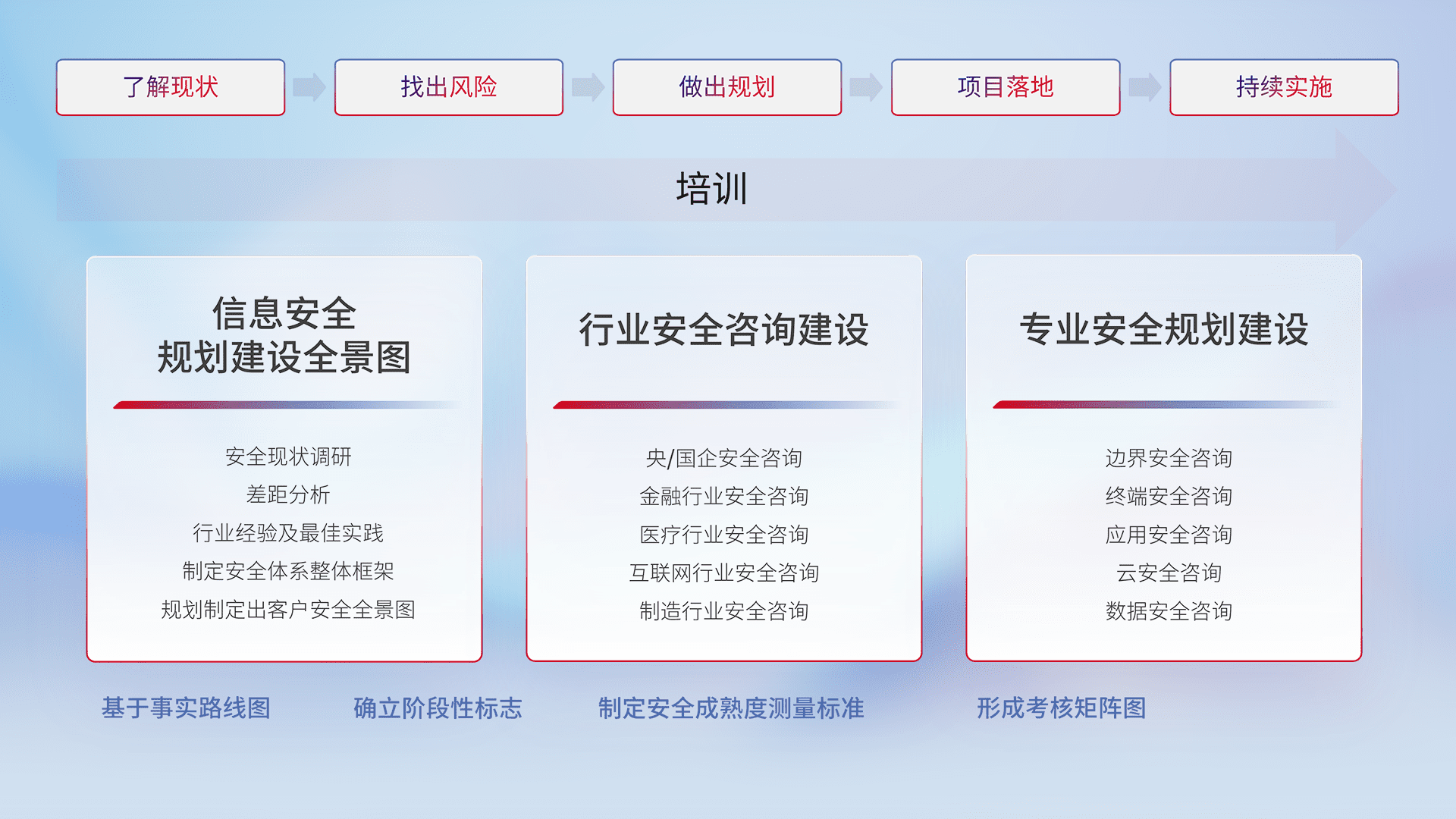 通过专业的法律咨询解读、、、合规架构体现、、、差异化解决方案、、、、测试实施支持等服务,,,,为客户量身打造等保合规体系。。。